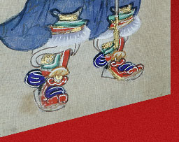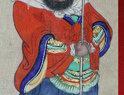 清代沿袭明制每年相同时间内务府便把门神对联悬挂在宫苑各处门上,直到农历二月初三才摘下收起。乾隆年间制定的《钦定工部则例·门神作》 记载当时宫内门神画种类、用料、做法及绘制数量颇详。清宫门神画是在纸、绢或布上画好后装裱到木框上,框顶安有铜挂环,用时挂于门扇上,用后摘下妥善保管,只要不污旧破损.仍可继续使用,这就使得历经数百年的门神画得以保存。我们也可以从清宫旧藏的 万国来朝图轴,雍正十二月行乐图轴等等,清晰地看到宫门上的门神画及对联的样式。 故宫现存清代门神主要有以下几类:一是将军门神、二是福禄门神、三是判子门神、四是童子门神,五是仙子门神,形象丰富多样,并非只有戎装一种。此次展览的藏品涵盖了以上所有的门神种类,多数为首次对外展出,具有颇高的学术与观赏价值。 |