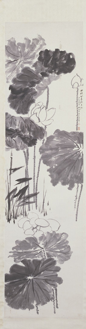 与张大千合作墨荷图轴