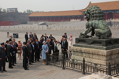 女王对中国历史文化非常感兴趣。参观中,女王认真听取讲解介绍,感受了
