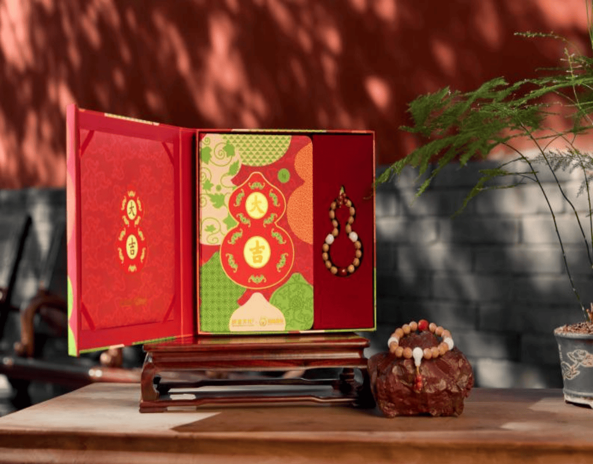 2025年,故宫出版社与蚂蚁森林再度联手研发公益文创,向公众发布了“故宫福禄绵长笔记本手串礼盒”。福禄绵长,是中国人喜爱的吉祥祝福,这款公益文创的设计灵感源自故宫博物院藏“红地描金开光大吉葫芦挂屏”。礼盒不仅将“福禄”作为产品主题视觉元素,更为其中的笔记本安装了“数字芯片”,消费者只需将手机靠近笔记本“贴一贴”,即可进入“故宫福禄林”,随机抽取故宫博物院藏不同样式的“葫芦”吉祥祝福数字卡,增添使用时的美好心情。该公益文创的数字化属性还体现在蚂蚁森林平台上的“千里江山画卷”与“故宫银杏树”数字皮肤,其广受年轻人的喜爱,参与者超过1300万人。同时,以“乾隆皇帝御骑万吉骦”为原型的数字骏马,也成为守护绿色能量的使者,被年轻用户收藏使用。该公益文创近日上线即被一抢而空,广受好评。同时,故宫出版社捐出款项,在阿拉善荒漠开辟“故宫文化公益林”,并将携手蚂蚁森林为每一位购买该礼盒的消费者在荒漠中种下一颗梭梭树,消费者打开礼盒扫码即可得种树证书。2026年春天,1.1万棵梭梭树将为阿拉善荒漠安下一抹绿色,而它的源头,即来自这一份数字化与实物相结合的故宫公益文创礼盒。
