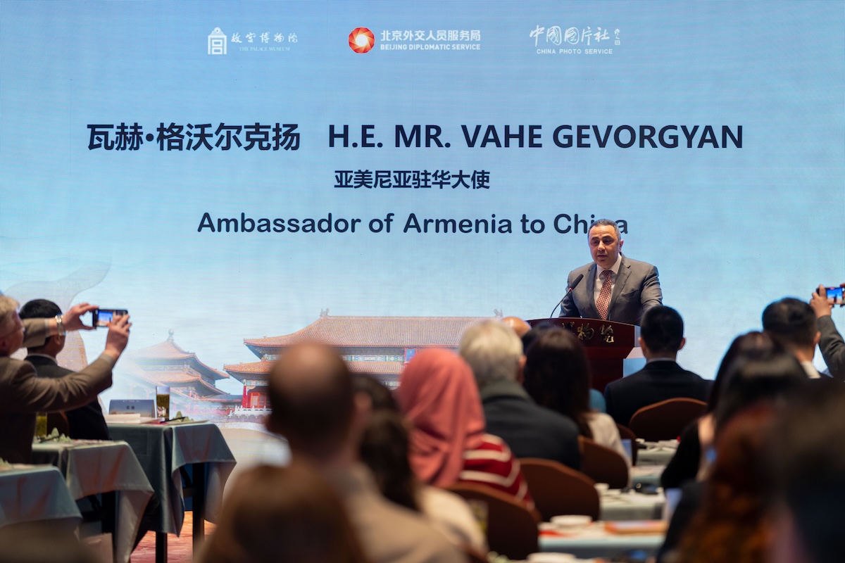 亚美尼亚驻华大使瓦赫·格沃尔克扬在致辞中感谢主办方的精心安排,使其以新的视角认识紫禁城。他表示,故宫作为连接中国与世界的地方,很多外国人都以探访此地作为了解中华文明的开始。每次探访这座城,都能发掘全新的故事,其所承载的深厚文化底蕴令人叹服。