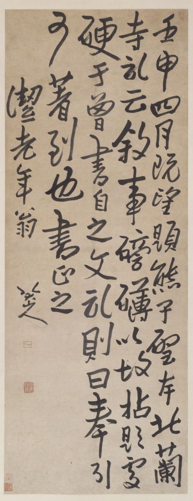 是书秃毫飞动,体势怪伟,具有二王及唐颜真卿用笔之气息,却又自出新意,为朱耷晚年之代表作。