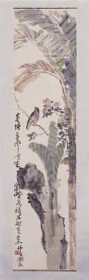 《蕉石幽鸟图》轴,近现代,陈师曾绘,纸本,设色,纵137厘米,横32.9厘米。