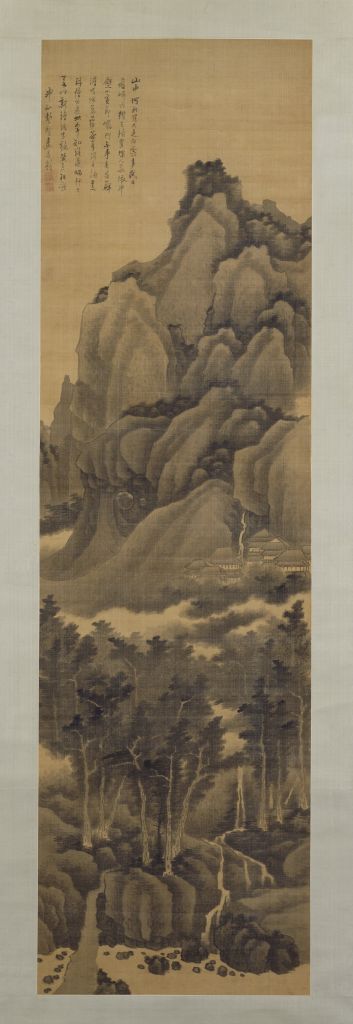《云壑松荫图》轴,清,龚贤绘,绢本,墨笔,纵174厘米,横49.4厘米。