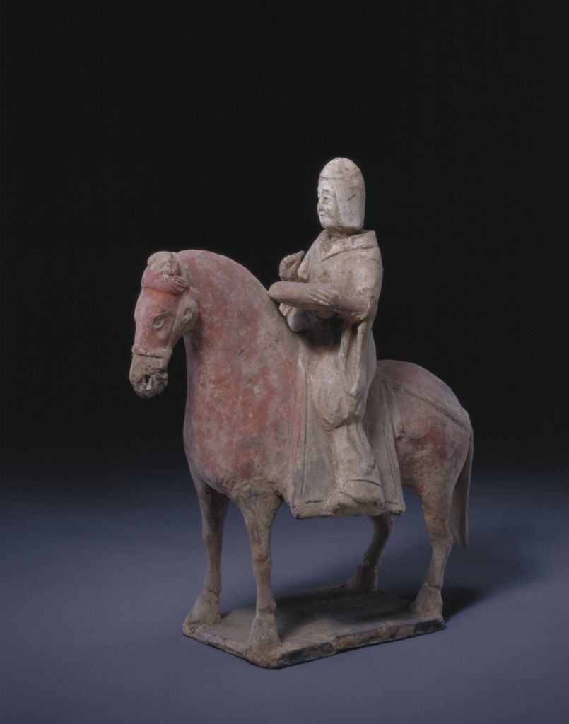 陶彩绘骑马男俑,北魏,高23厘米,长21.4厘米。