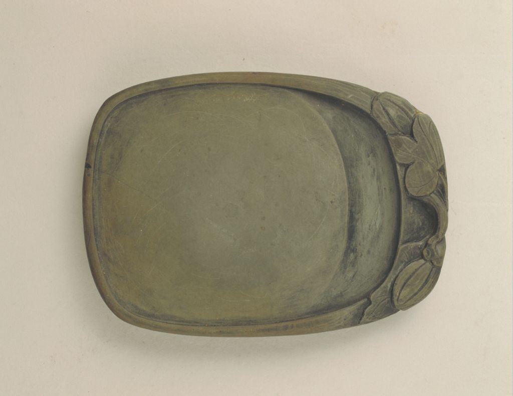 此砚体轻而薄,造型简朴,小巧实用,为清代晚期砚式风格。