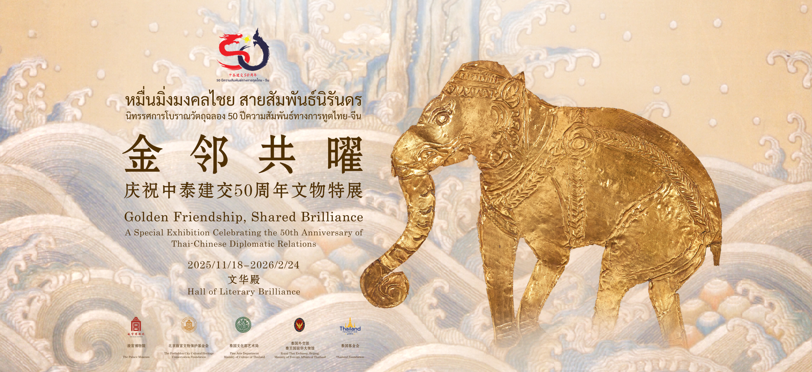 本次展览由泰国驻华大使馆作为联合推广方,并得到北京故宫文物保护基金会与泰国基金会的公益支持。