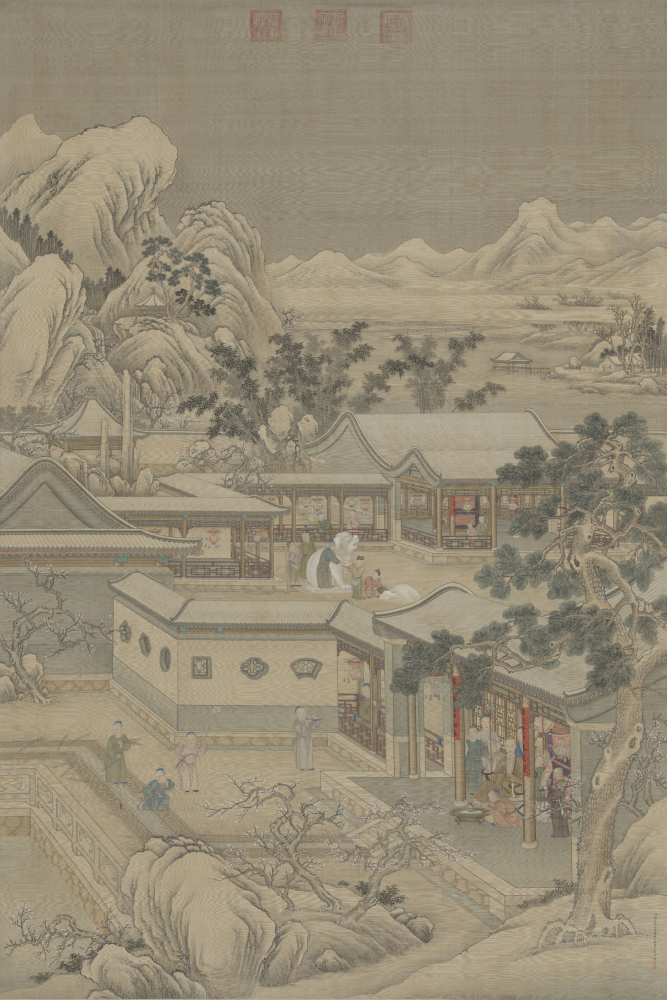 丁观鹏、郎世宁等合画弘历岁朝行乐图轴