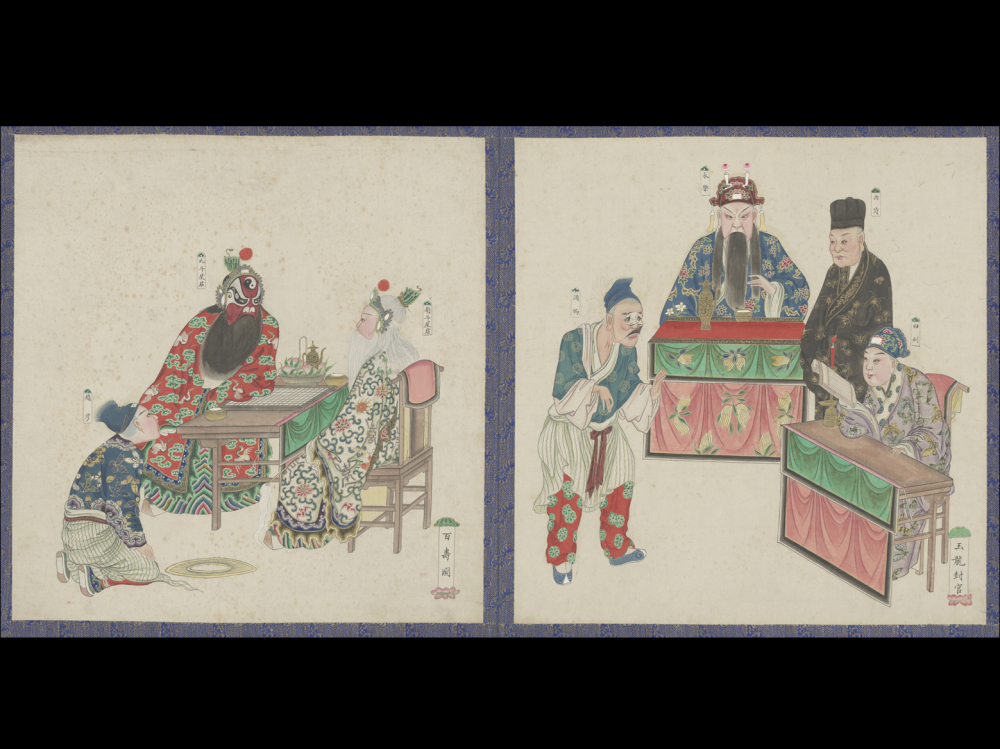 清人绘《戏剧图册》-《玉龙封官》《百寿图》