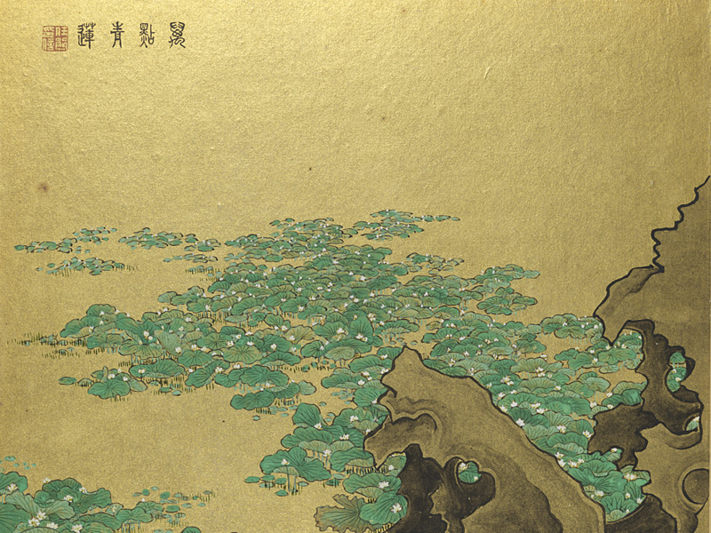 清,任熊,金笺本(十开),设色,纵26.4厘米,横20.5厘米。