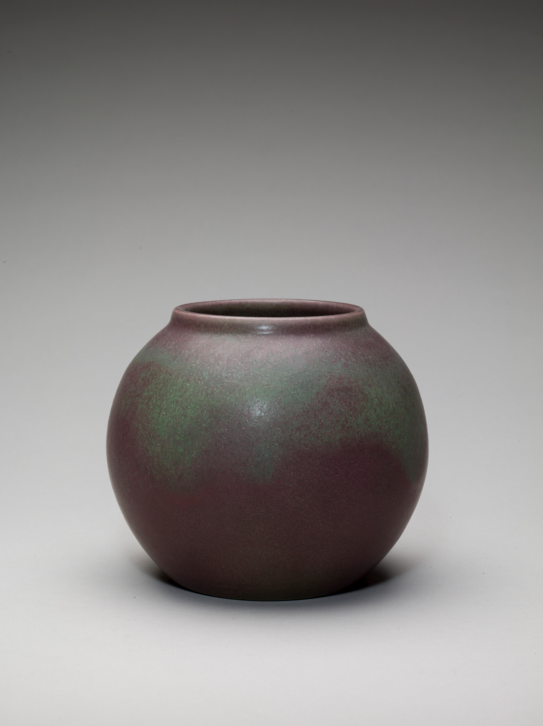 此罐原藏养心殿内,为美国陶艺家范 · 布里格尔于1903年创作烧制。范 · 布里格尔(1869–1904年),荷兰裔美国艺术家,其创作有极具特色的哑光釉陶艺品,是美国最早进行陶艺创作的艺术家之一。