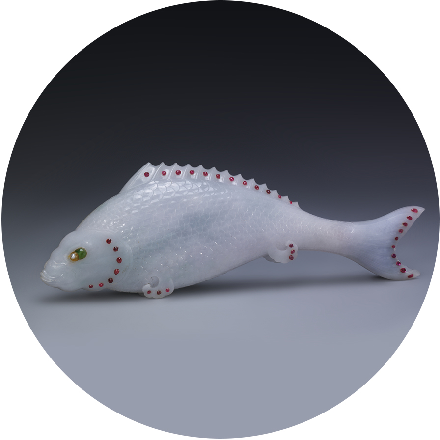 唐代已有鱼佩,宋、金之时,玉鱼衔水草佩非常流行,此类作品一直延续到清代,有富贵之意。