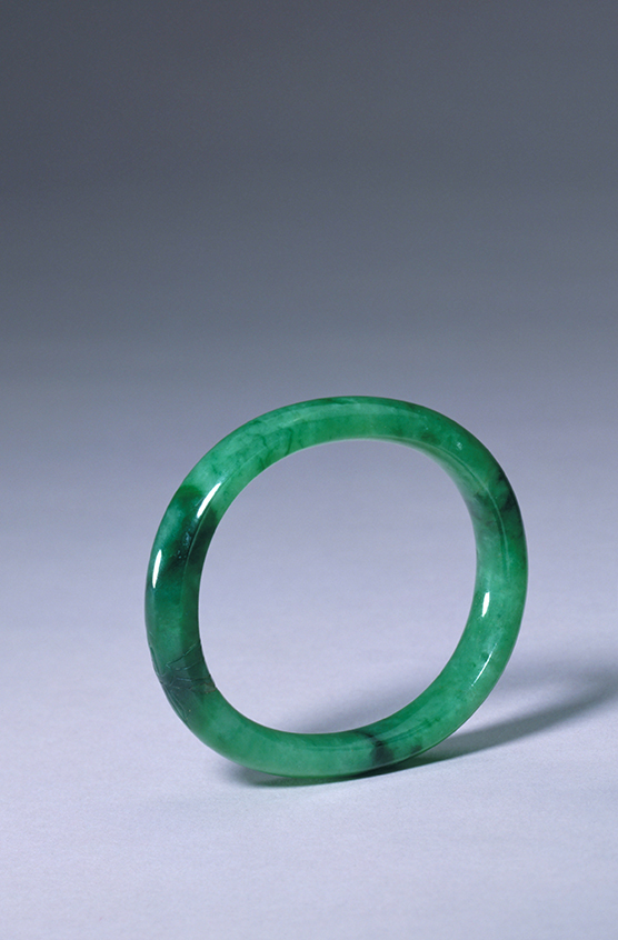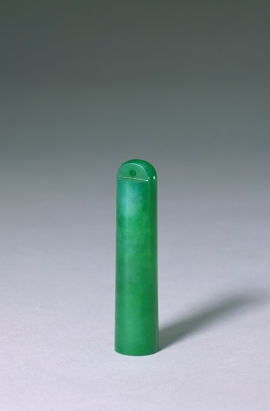 此作品无纹饰,以翠色沉重、质地优良取胜。
