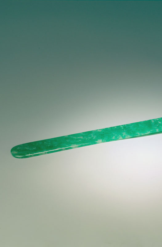 扁方是清代满族妇女的头饰,多见于宫廷,目前清宫旧藏较多。这些作品多数有花纹,或浮雕,或镂空,以二方连续图案最为常见。扁方的用材广泛,其中金、玉、翠质者尤为珍贵。此作品不着纹饰,以材质见长。