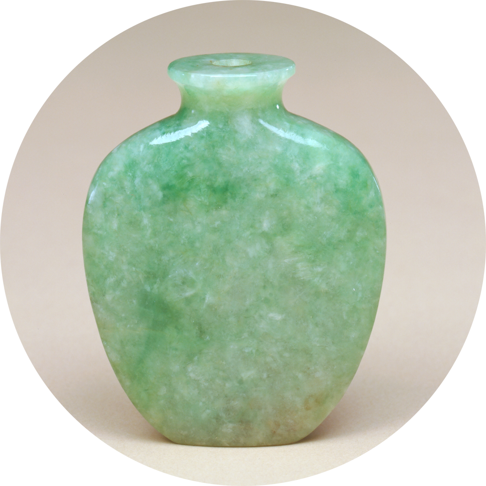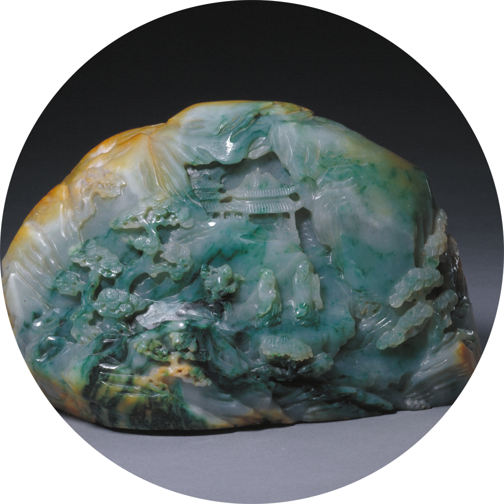 2.显色的工艺标准是“色以光而愈丽”。为了显示翠绿色的艳丽晶莹,要用足“光”工之力,使其光泽晶莹,色光浸润,其色则更加艳丽。这完全是鉴赏家的审美标准。