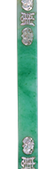 翠色较重,微透光。扁方为长条形,片状,较宽。一端呈前凸的弧状,另一端回卷,两个端头呈梅花形。