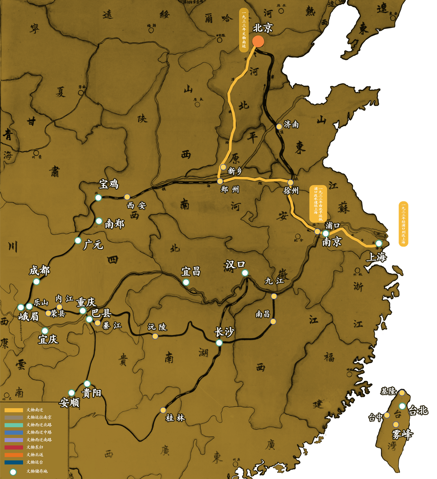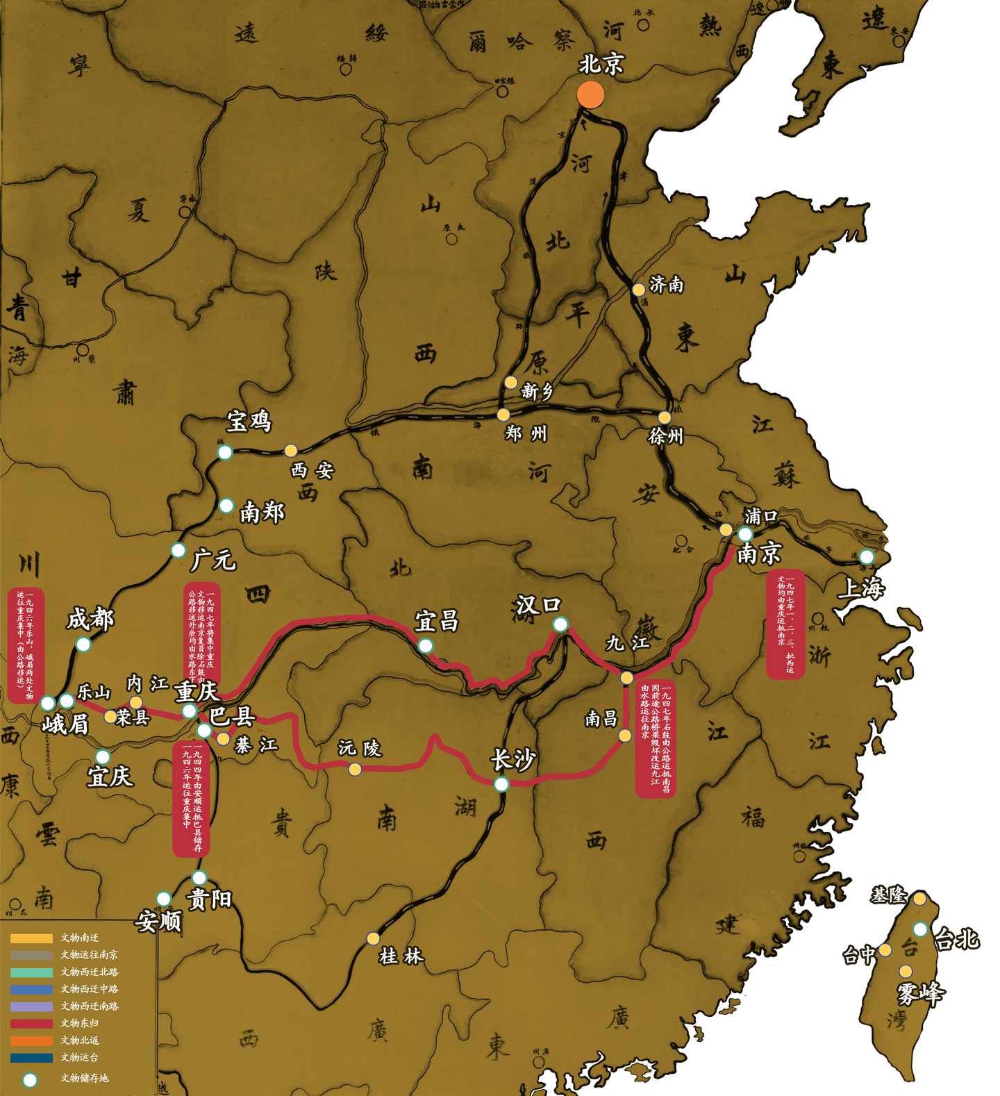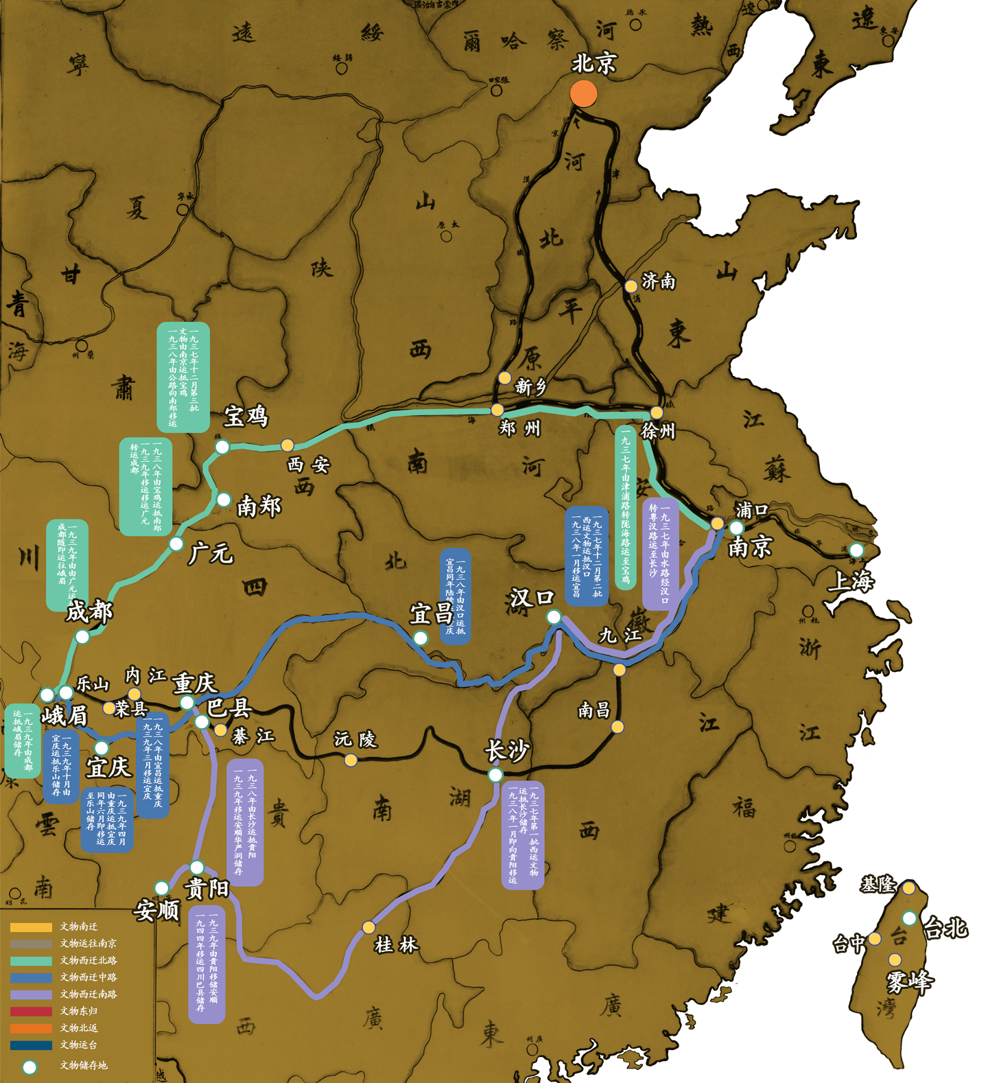 历史上每逢国土沦陷之时,文物或毁于兵火,或被入侵者掠夺。古今中外,概莫能外。1860年英法联军入侵北京,火烧圆明园;1900年八国联军攻陷北京,我国的珍贵文物遭到空前浩劫。有鉴于此,才有了自抗战前奏开始的故宫文物大迁徙。这是中国人民在第二次世界大战背景下为保护人类文化遗产而采取的重要举措。在那战火纷飞的年代,故宫前辈们凭着爱护国家瑰宝的热诚,不畏艰难险阻,跋山涉水,转移战火威胁下的国宝,为捍卫民族文化浴血奋战,有的甚至献出了自己年轻的生命,谱写出一曲保护人类文化遗产的壮丽史诗。
