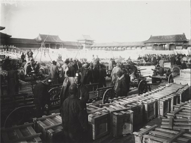 第二批古物南迁在东华门搬运木箱情况