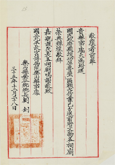 文物集中工作始于1946年1月,至1946年9月15日,全部文物均集中至重庆向家坡贸易委员会的临时库房。撤销巴县、乐山和峨眉三个办事处,成立甲、乙、丙三组仓库办事处,由原三个办事处职员分别管理。在重庆的主要任务是防火、防盗、防鼠和白蚁,其中防白蚁成为重点工作之一。