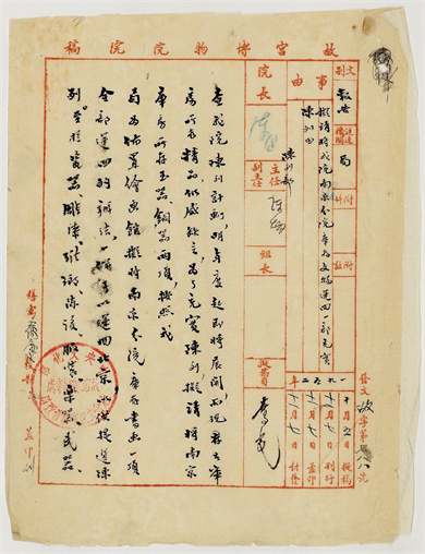 故宫博物院陈列部文物北运呈社会文化事业管理局文