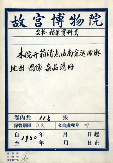 《本院开箱清点由南京运回舆图、图像、杂品清册》