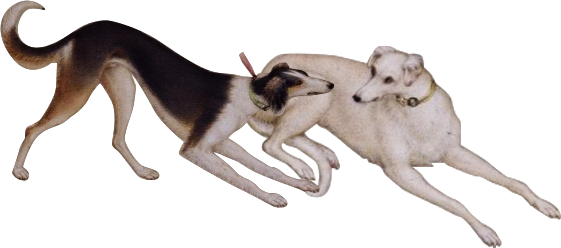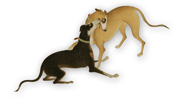 晋傅休奕《走狗赋》曰:“轻迅者莫如鹰,猛捷者莫如虎。惟良犬之禀性,兼二儁之劲武。”狗的祖先与狼有着共同的血脉,它们体形瘦长,性情凶猛,机智多谋,喜欢成群追击,服从权威者的领导,这一秉性使它们直到今天仍旧是人类狩猎、作战的极好帮手。作为随军打仗或狩猎的猎犬早在远古时代的岩画之中就有表现,汉代墓室壁画中的“狩猎图”中时常可以见到猎犬英勇冲锋的身影。随着社会的进步,狩猎不再是生存的必须,而成为贵族悠闲享乐的时尚,或是加强武备、训练军队的方法之一,这在有着北方民族血统的唐代、元代和清代统治者中尤为突出,而猎犬的形象在这三个朝代的艺术作品中也表现得最为生动传神。